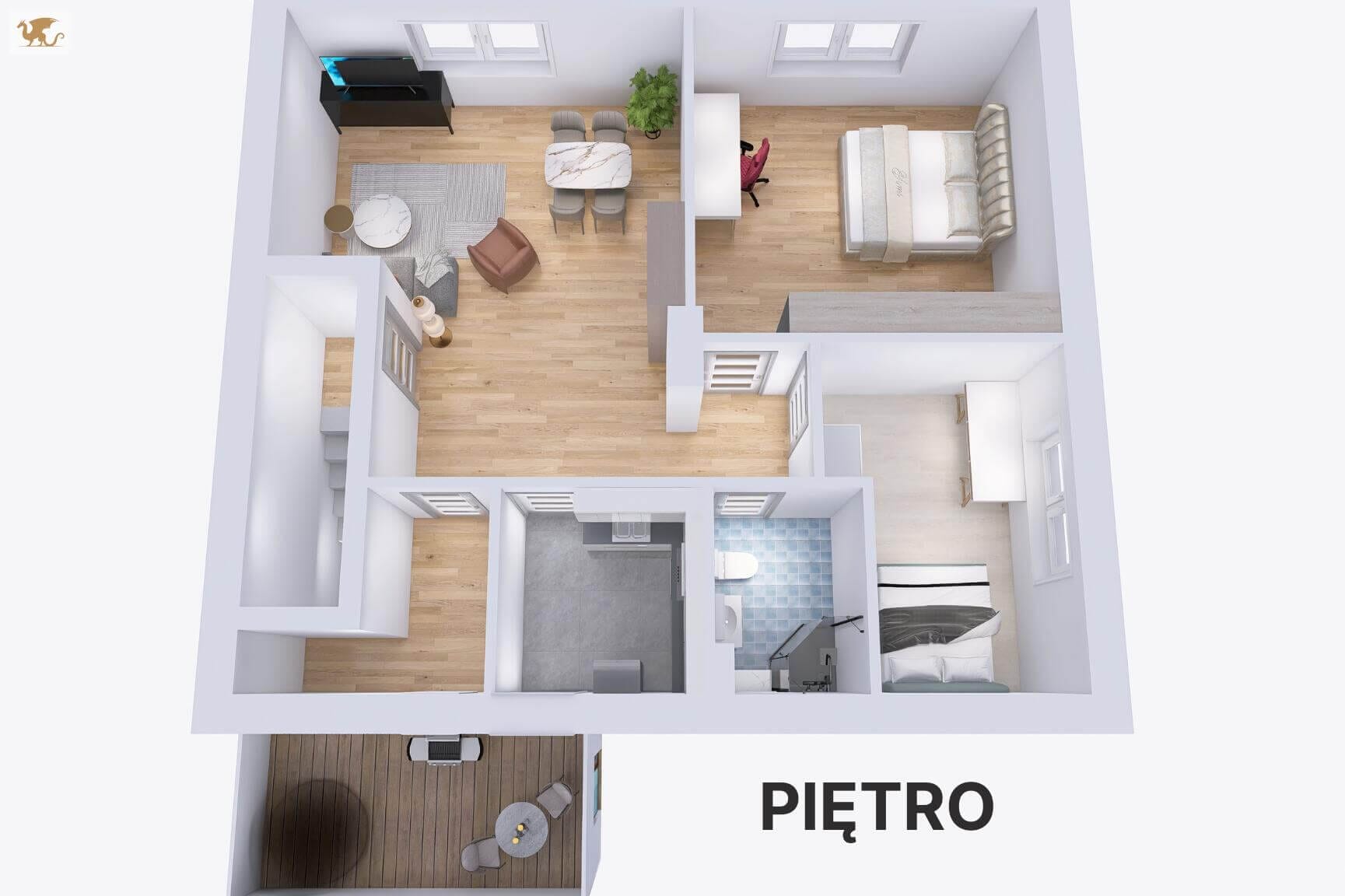 Piętro – 69 m2 (część mieszkalna, gotowa do wprowadzenia)