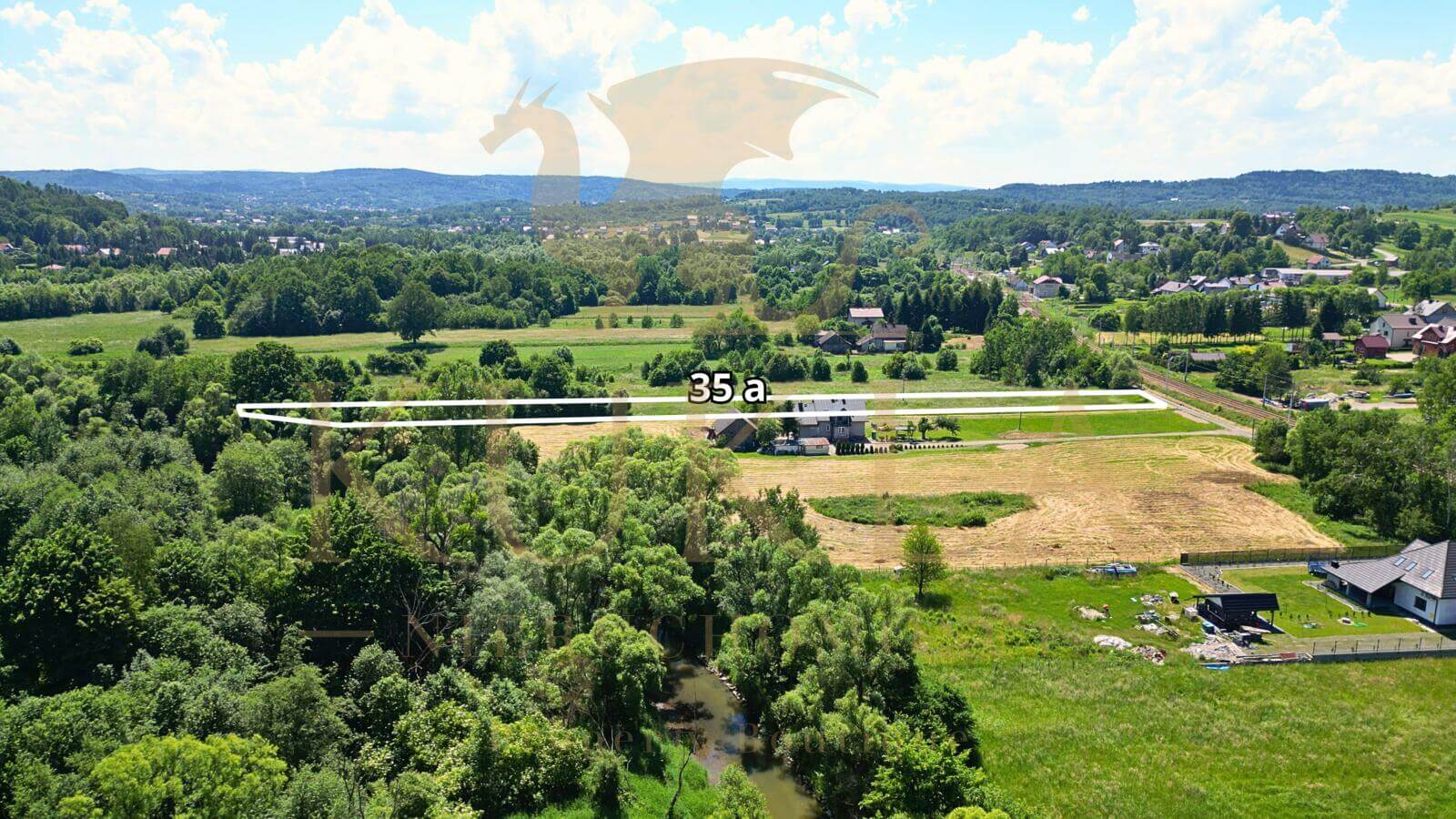 Działka o powierzchni 34,85 arów (3485 m) usytuowana jest przy rzadko uczęszczanej drodze, ma regularny kształt i jest prostopadła do torów kolejowych, co może stanowić interesujący element krajobrazu. Sąsiedztwo rzeki dodaje uroku temu miejscu, a możliwość bliskiego kontaktu z naturą zwiększa jego atrakcyjność. Na terenie działki znajduje się 10 arów lasu, co stanowi doskonałe miejsce na spacery i relaks wśród zieleni. Jest to idealna propozycja dla osób ceniących sobie bliskość przyrody oraz możliwość posiadania własnego kawałka lasu. Pod względem uzbrojenia, działka jest dobrze wyposażona: przy drodze znajduje się wodociąg oraz infrastruktura telekomunikacyjna, bezpośrednio na działce dostępne są przyłącza gazu oraz prądu.
