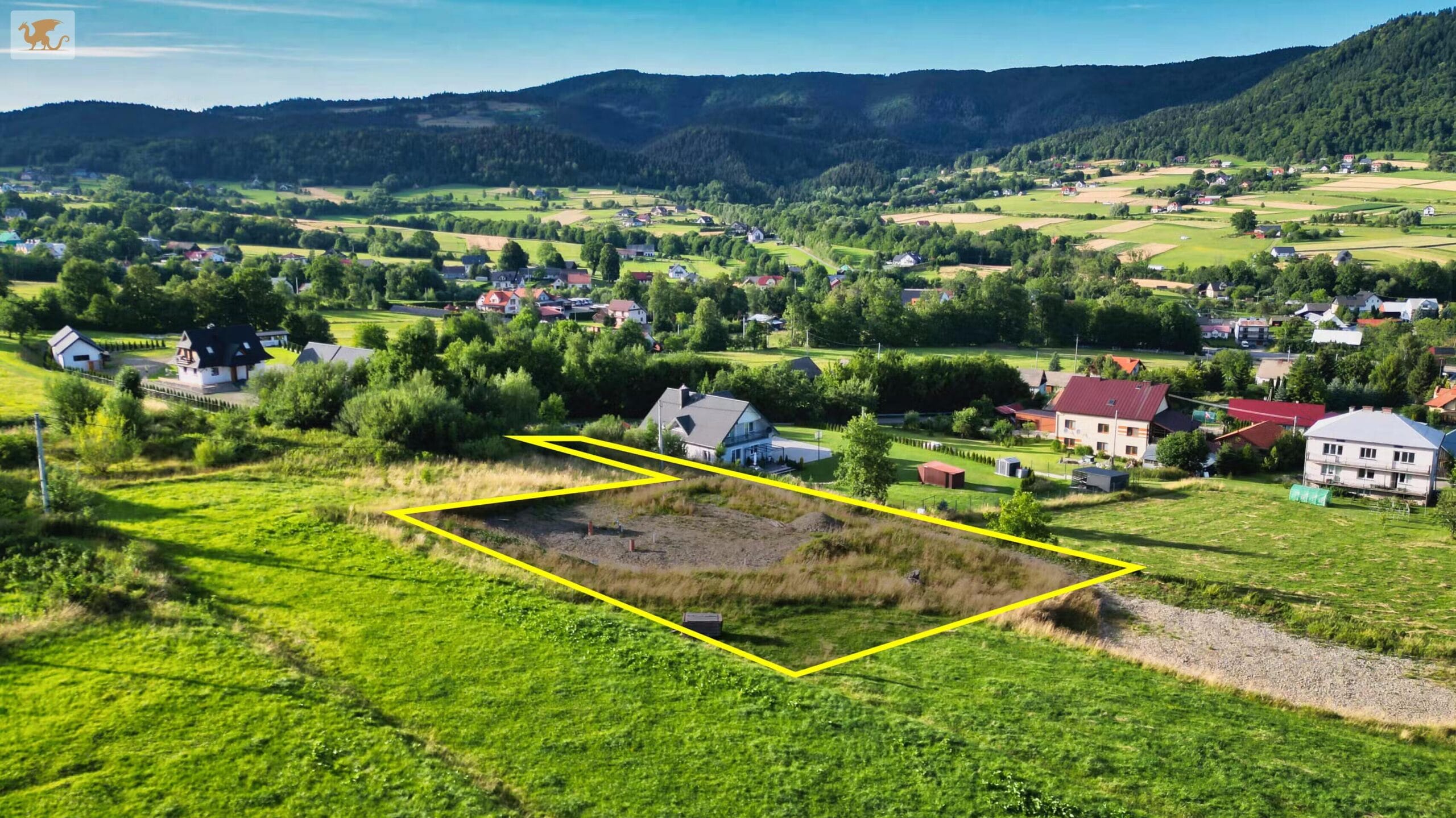 Działka ma powierzchnię 2476 m, kształt zbliżony do prostokąta i płaskie ukształtowanie terenu, co znacząco ułatwia proces zabudowy. Teren został wyrównany oraz utwardzony pod przyszłe fundamenty.